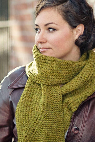Wayfarer is a textured scarf whose raised ridges meander across a field of garter stitch through the combination of increases and decreases. The scarf has a slipped stitch selvedge on both sides — every row begins by slipping the first stitch with yarn in front, then bringing the yarn between your two needles to the back in order work second stitch.